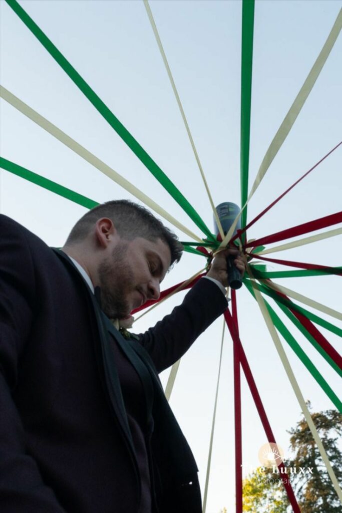 On commence par une alternative au lancer de bouquet qui, en apparence, ressemble au lancer classique, mais en mieux ! Pourquoi se contenter d’un bouquet à lancer, quand on a la possibilité d’en donner à tout le monde ? En effet c’est ça le principe, créer un bouquet qui est en fait plusieurs petits bouquets attachés ensembles. Au moment de le lancer, il suffira de retirer le lien qui les unit. Une fois dans l’air les bouquets vont se répartir et créer une véritable pluie de bouquets. Ainsi, plusieurs pourront en avoir !