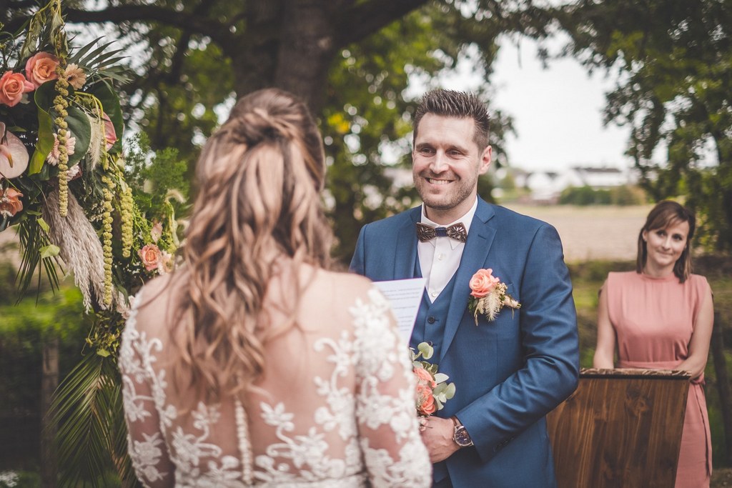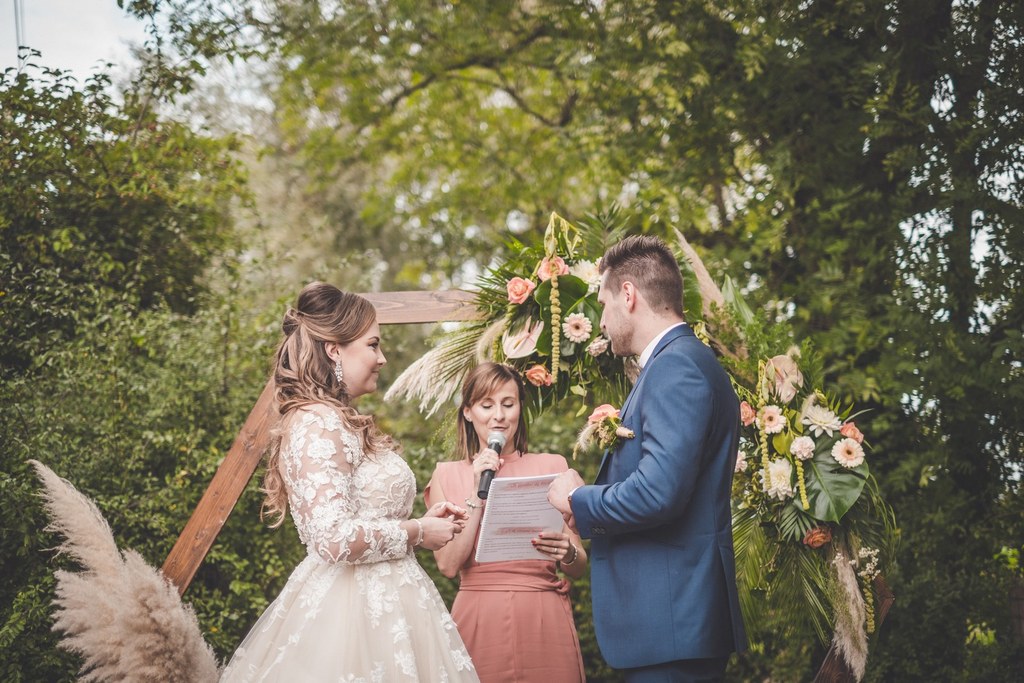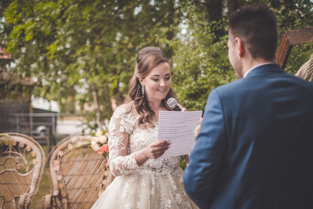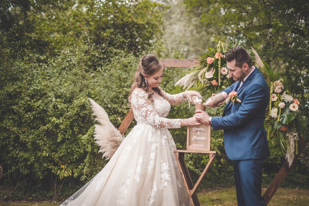 Une cérémonie dans un écrin de verdure, au coeur de notre jolie région de Béthune, ça vous dit ? Je vous emmène rencontrer Sandra et François, les deux protagonistes de cette charmante cérémonie laïque officiée à la Ferme de la Motte Dorée.