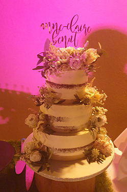 Une fois que nous sommes prêts, les premiers convives arrivent, et mon rôle c’est de les accueillir, faciliter le parking, et les diriger vers le rafraîchissement. On enchaîne ensuite la journée: vin d’honneur, passage sur la terrasse pour le repas, entrée des mariés, ouverture de bal, etc. jusqu’à l’arrivée du Wedding Cake.