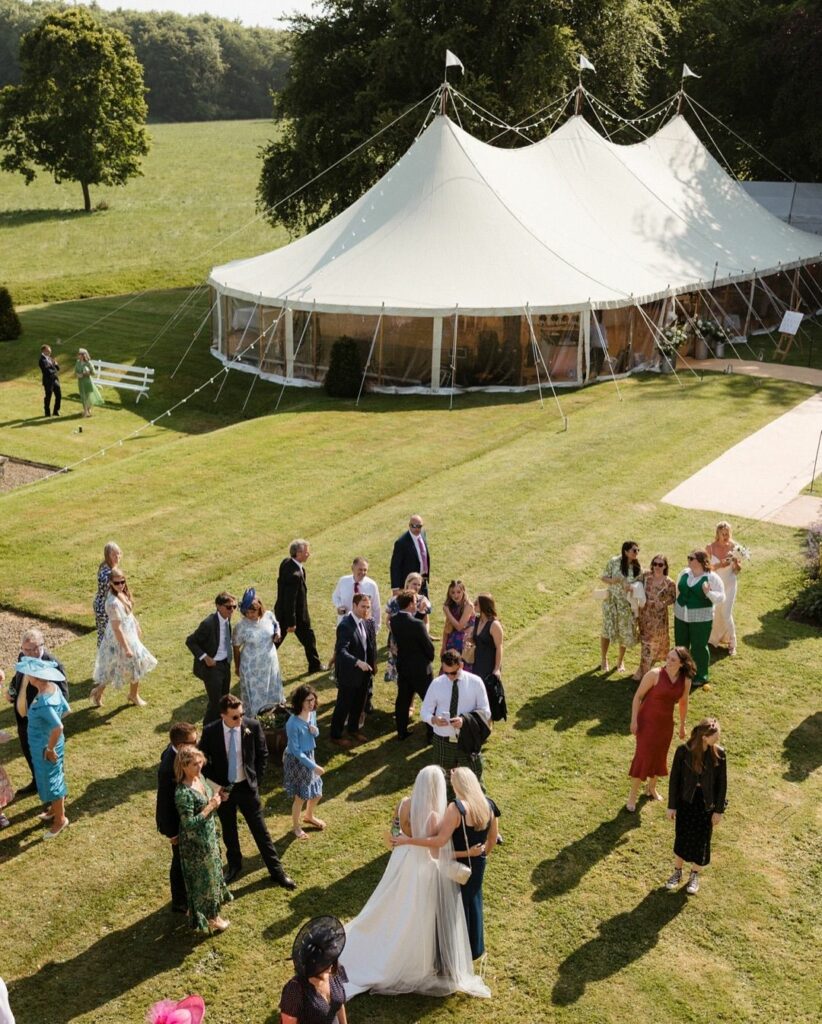 Lorsque l’on organise un mariage à domicile, tout est à créer : réception des livraisons, camions réfrigérés pour le traiteur, sanitaires, gestion de l’électricité, location de mobilier, vaisselle, tentes, décoration… Il faut également penser aux plans A et B en cas d’intempéries, à la délimitation des espaces (vin d’honneur, réception, parking, cuisines, zones enfants) et à la circulation fluide des invités. Certains invités pouvant venir de loin, le sujet des couchages est également à prendre en compte.