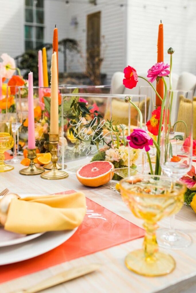 Des fleurs, aux bougies en passant par la papeterie, le champ est large pour amener à cette journée une décoration de mariage colorée. Et parce que c’est la tendance de cette année, chez Love & Life on a pu imaginer la décoration parfaite pour cette ambiance ensoleillée, il ne vous reste plus qu’à l’imaginer.