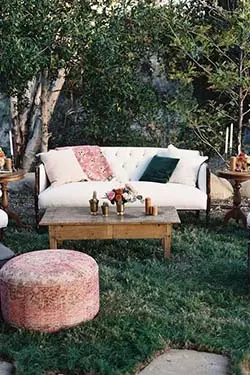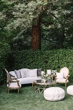 • Afin de créer un coin détente pendant la première partie de votre cérémonie, positionnez du mobilier confortable pour vos convives. Canapés, grands fauteuils, tables, chaises, poufs, coussins, tout doit être pensé pour reposer vos invités. Cependant, ce petit coin cocooning doit être réalisé dans un endroit stratégique de votre extérieur. Éloigné du bruit et de la chaleur, vous pouvez aménager cet espace sous un grand arbre ou sous des parasols.
