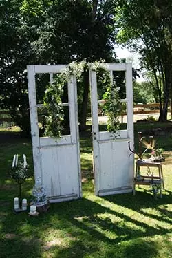 • Et pourquoi ne pas sortir des objets de la maison pour décorer l’extérieur de votre réception de mariage ? Il est possible d’utiliser des cadres, miroirs, horloges, échelles, et même une porte pour enjoliver le tout ! Des petites touches qui rendront votre cérémonie de mariage plus conviviale et accueillante.
