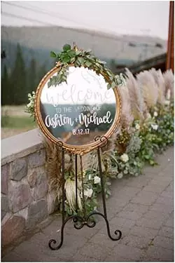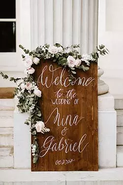 Le panneau de bienvenue est le panneau de mariage le plus utilisé par les futurs mariés. Il s’agit d’un panneau d’accueil qui donne le ton et annonce la couleur aux invités lorsqu’ils arrivent sur place. Il existe de nombreux styles que vous pourrez appliquer selon vos goûts et envies. Sur un panneau en bois, en ardoise, ou même sur un miroir, accueillez vos convives avec de simples mots à l’image de votre couple. Placez-le en extérieur à l’entrée de votre réception. Vous pouvez aussi l’accompagner d’autres éléments décoratifs comme des fleurs, des objets, du voilage… Tout dépendra du thème choisi !