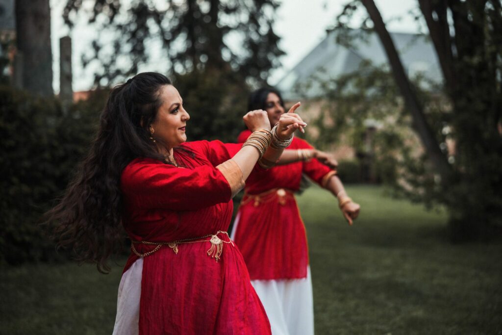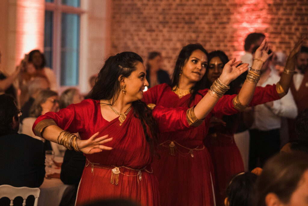 Faire appel à des danseurs professionnels pour bluffer vos invités ! Pendant le vin d’honneur, ou bien la soirée, un groupe de danseur qui vient mettre le feu, c’est toujours impressionnant ! Accordés à votre thème, ou en référence à une/votre culture, (comme ici les danseuses indiennes) cela viendra mettre des paillettes dans les yeux de vos invités. C’est aussi parfait pour lancer la soirée, et faire monter l’ambiance de votre salle. Pour les plus téméraires, vous pouvez même prendre des cours et entrer en piste avec eux !