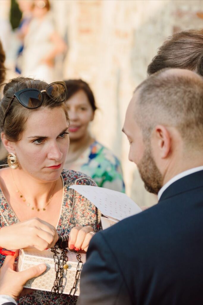 Adrien & Mathieu, par exemple, ont dissimulé les indices permettant de trouver la réponse à l’énigme tout au long de leur cérémonie laïque !