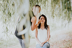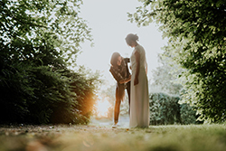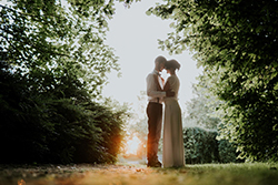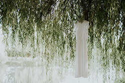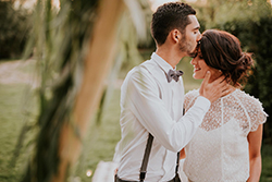 « Il est 19h un soir de fin d’été. Le soleil commence à préparer sa fin de journée et se dessine alors de jolies couleurs dans le ciel. La future mariée se prépare alors sous le chaleureux branchage du saule pleureur du Domaine des Cascades. Elle aperçoit sa jolie robe, dessinée par Constance Chevalier, qu’elle avait choisi avec beaucoup d’émotion quelques mois plus tôt. La dentelle l’avait totalement conquise, et correspondait totalement à l’esprit bohème qui lui allait si bien.