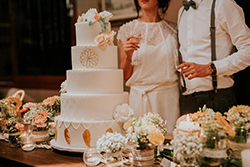 À la fin du repas, ils découvrent la dernière surprise du jour. Un magnifique wedding cake composé et décoré par Unik’Cakes vient clôturer cette douce journée. On ne sait où regarder tellement il y a de jolis détails. Les plumes dorées, l’effet dentelle et les petites fleurs en pâte à sucre le rende parfait. Finalement, la journée se termine, les mariés se souviendront de ce joli jour organisé par Love & Life Events. »