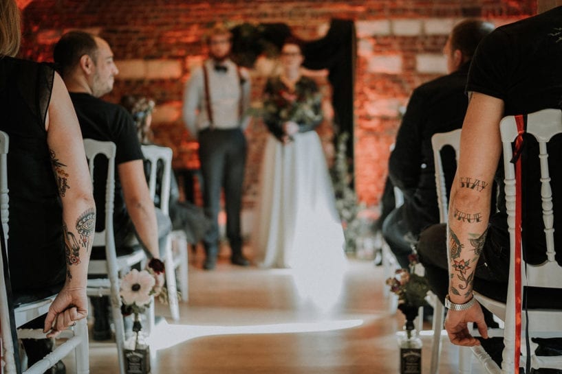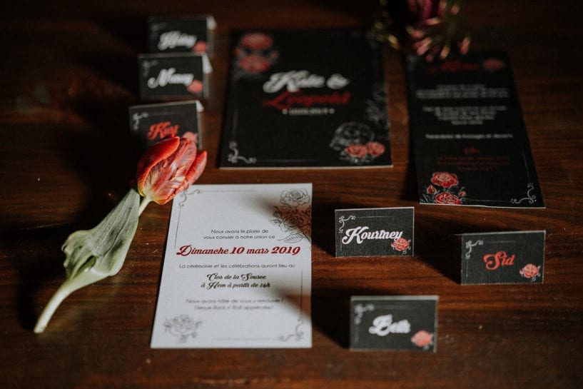 Parce que le côté bohème et champêtre, ça ne vous ressemble pas du tout. Parce que vous, vous êtes plutôt ROCK, et que vous préférez le rouge et le noir au rose poudré et blanc. Je vous raconte aujourd’hui l’histoire de ce mariage ROCK’N’LOVE !!! Enfilez votre blouson de cuir, servez vous un bon whisky, et direction une cérémonie à base de tatouage, de cigares et de fumigènes !