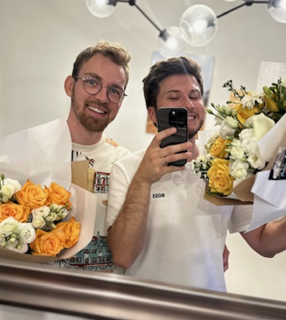 Jérôme : « J’ai apprécié ce mois car j’adore les fleurs et je ne pensais pas que dim allait m’offrir un bouquet. En rentrant du travail avec mon propre bouquet à lui offrir, il m’attendait tendrement avec le sien derrière la porte. J’étais surpris et surtout j’ai adoré cette tendresse. »