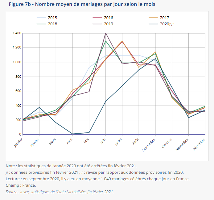 - 36 320 se sont déroulés d’octobre à décembre, soit 16% des mariages