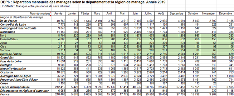 Dans les Hauts-de-France, les chiffres sont à peu près les mêmes que pour la France. En effet, en 2019 parmi les 19 750 mariages célébrés dans la région :