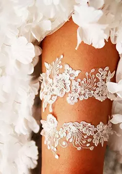 Ah l’incontournable et traditionnelle jarretière ! Cette pratique, issue du Moyen Âge, était utilisée par les femmes. Celles-ci accrochaient un ruban en dentelle sous leur genou afin de tenir leurs bas. Puis, ce rituel a évolué au fil des années et les femmes remontaient leur jarretière en haut des cuisses, ça en est même devenu un jeu. Afin de mettre un brin de folie et de vintage à votre mariage, vous pouvez mettre en place ce jeu traditionnel de la jarretière ! Le but est simple : les hommes veulent apercevoir la jarretière de la mariée. Pour cela, ils enchérissent afin que celle-ci lève sa robe. Quant aux femmes, elles enchérissent pour que la mariée abaisse sa robe. Finalement, cette tradition occidentale est très prisée en France ainsi qu’aux États-Unis. Néanmoins, en Espagne la même coutume est revisitée avec la cravate du marié !
