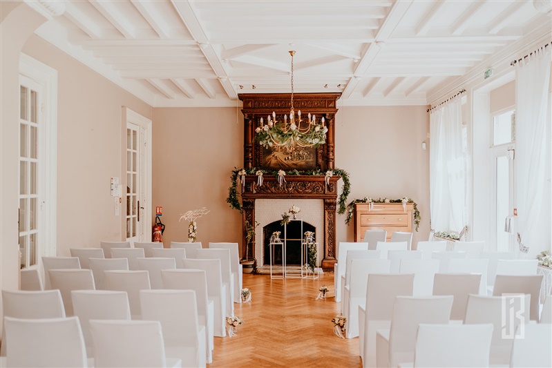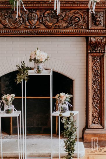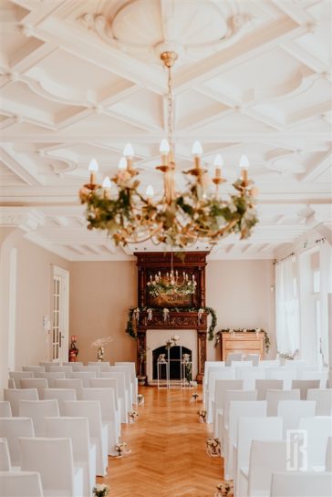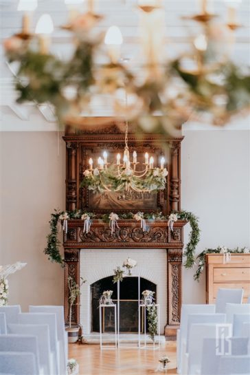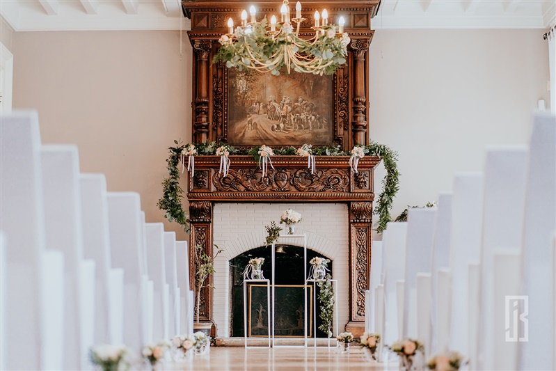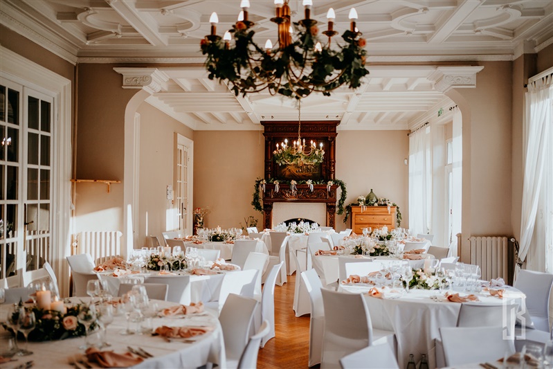 Et enfin, pour la partie décoration de mariage, C&M souhaitaient une ambiance chic et élégante, épurée. On est donc parti sur du blanc, du rose pâle et de la verdure. Nous avons végétalisé une bonne partie de la salle: la cheminée, les lustres, les fenêtres. Tout en restant sobre et élégant.