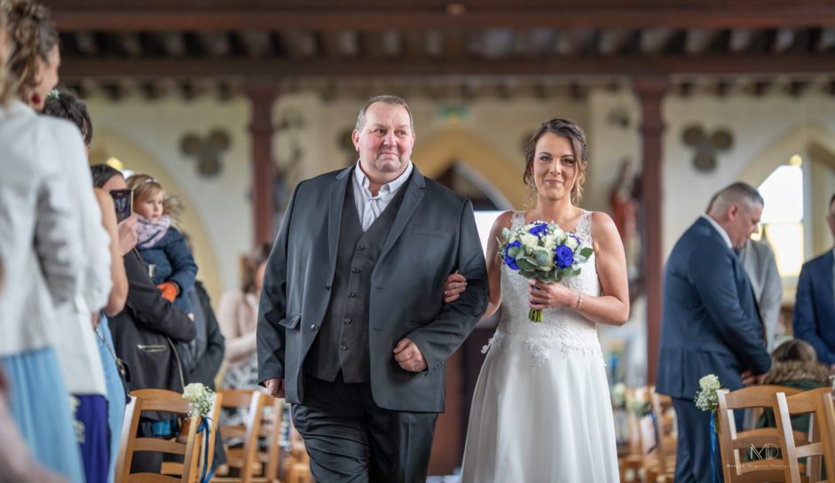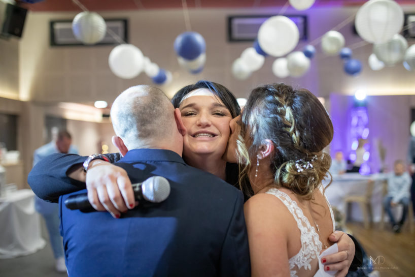 Aurore et Yoan n’ont pas eu UN mariage, mais DEUX mariages ! La cérémonie civile l’an dernier, sous les trombes de pluie, et le mariage religieux cette année, sous … les flocons de neige ! Il faisait froid, mais les proches de ces deux amoureux ont réchauffé la journée par leur bonne humeur et l’ambiance de folie sur le dancefloor !