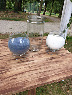 Un couple que j’ai adoré, tant pour leur simplicité que pour la flamme qui existe entre eux. Ils m’ont raconté leur histoire, m’ont expliqué pourquoi ils se mariaient et quel sens ça avait pour eux. Ils ont choisi les proches qui allaient intervenir, puis le rituel qu’ils allaient faire: le rituel du sable.