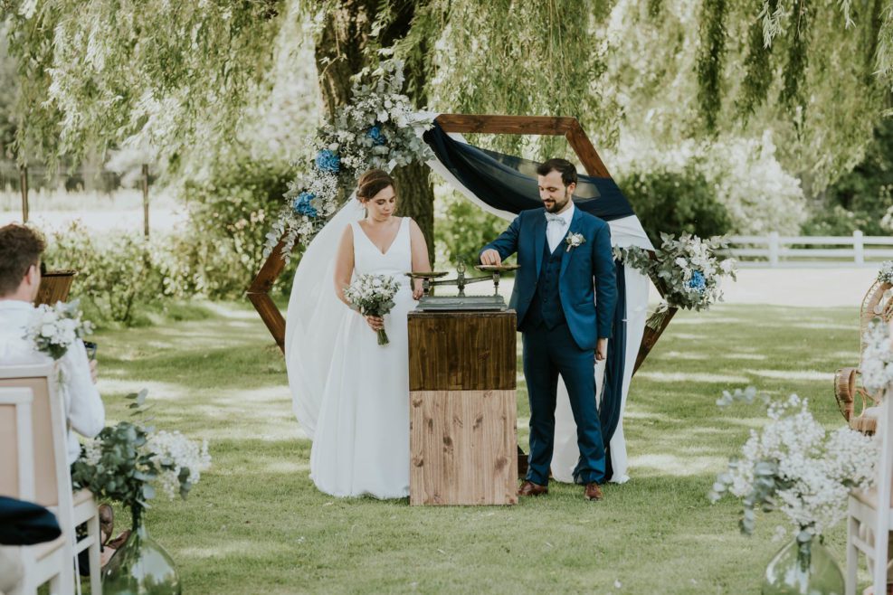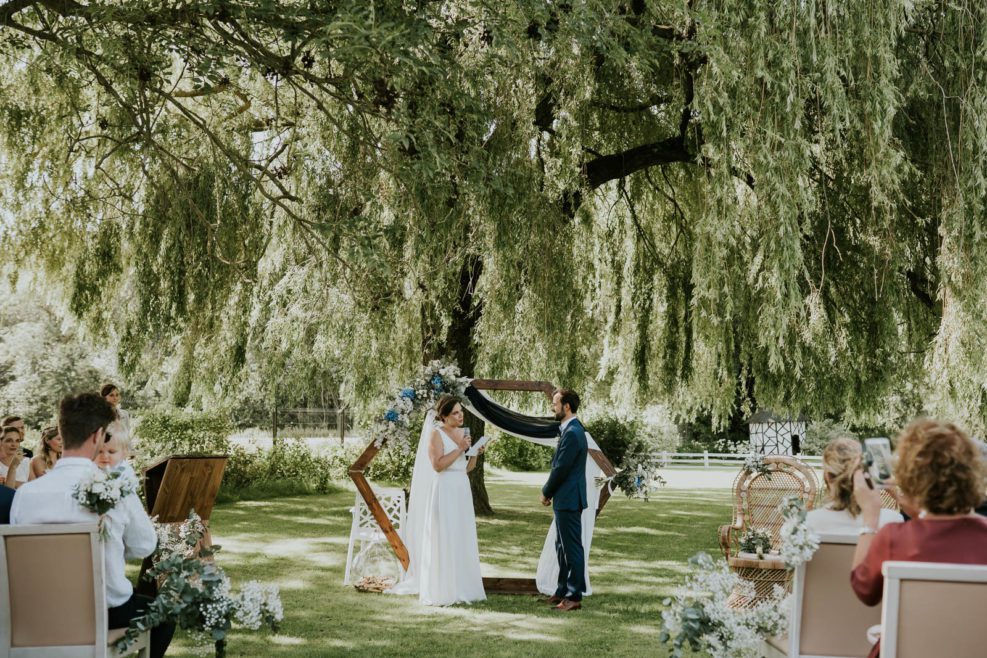 La cérémonie laïque de Marion & Vincent s’est déroulée dans les sublimes jardins du Domaine de la Chanterelle à Verlinghem. C’était un joli jour d’été, ensoleillé, chaleureux, propice à l’amour !