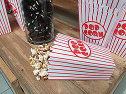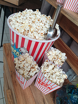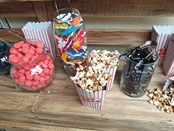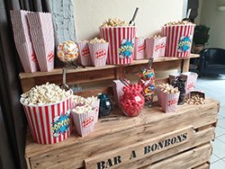 Bien évidemment, on ne peut parler de thème cinéma sans évoquer le popcorn, présent sous trois saveurs dans le candy bar. Enfin, le Photobooth donnait l’impression aux invités d’être sous les projecteurs d’Hollywood, avec son rideau rouge et son étoile lumineuse.