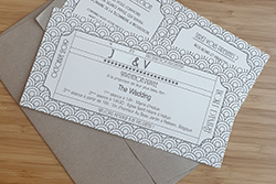 J & V ont fait confiance à l’Imprimerie Mérigond pour leurs faire-part de mariage. Tel un vieux ticket de cinéma, les invités pouvaient retrouver toutes les informations nécessaires à cette journée, le tout dans un champ lexical tout trouvé!