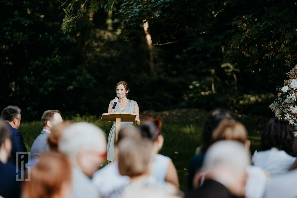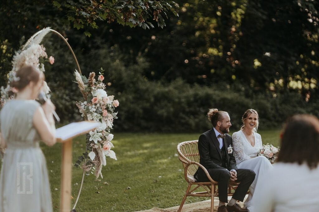 Une belle cérémonie, c’est l’histoire des mariés racontée, mais c’est aussi les proches qui interviennent, les rituels que les mariés ont choisi auparavant pour immortaliser le moment, c’est aussi les invités qui rigolent, qui pleurent et qui interviennent. Enfin voilà, une cérémonie se prépare en amont, mais ce qui la rend encore plus jolie, ce sont les interactions du moment venu.