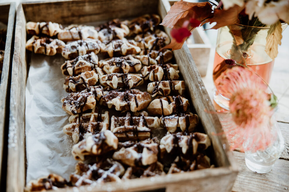Une fois les nombreux discours, les larmes (de joie), les vœux, les déclarations d’amour et les bisous passés, la cérémonie touche à sa fin. Et c’est avec des gaufres au chocolat super réconfortantes et des boissons chaudes en tout genre (café, chocolat, jus de pomme, vin) que l’on continue la journée !