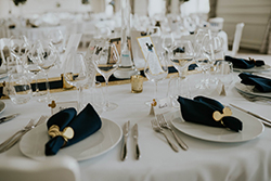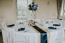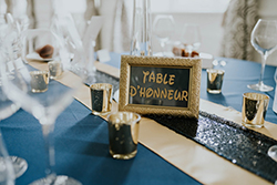 Avec une palette de couleurs bleu navy et or, nous avons construit chaque table avec des touches fantastiques tout en gardant une ligne sobre. Vous pouvez voir les photos en bas de l’article 😉