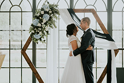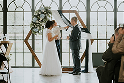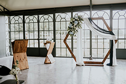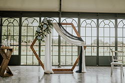 La cérémonie s’est déroulée dans l’orangerie du Château de Couturelle. Le temps était capricieux ce jour là, et ne nous a pas permis de profiter du parc, mais la cérémonie était encore plus cosy. Nous avons joué la sobriété pour la décoration, laissant place à l’arche hexagonale, qui attirait tous les regards. Nous voilà partis dans un moment hors du temps…