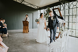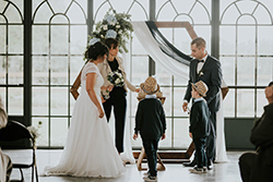 Pour sceller leurs vœux dans le temps, ils s’échangent leurs alliances, apportées par leurs enfants. Après un profond « Oui » échangé, chacun passe l’anneau à l’autre. Un baiser, sous les applaudissements des invités, vient apporter une vague de bonheur à toute l’assemblée !