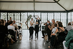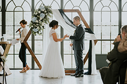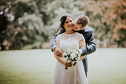 “You’ll be in my heart” de Phill Collins retentit … le cortège commence… Julien arrive au bras de sa maman, suivi par les témoins, les proches de la famille, et enfin … la mariée et ses enfants ! Les invités ont leurs yeux pétillants en la voyant remonter l’allée. Les mariés s’embrassent, puis s’installent. Je commence alors à retracer leur histoire: comment se sont ils rencontrés ? quelles ont été les grandes étapes de leur vie ? comment voient-ils l’avenir ensemble ? mais surtout … pourquoi ils se marient. Qu’est-ce que ça symbolise pour eux ? Parce que c’est bien cela qui est important, les raisons pour lesquelles ils se marient. Chaque invité écoute avec attention, apprend de petites anecdotes sur Morgane et Julien, et se dessinent des sourires sur leurs visages.