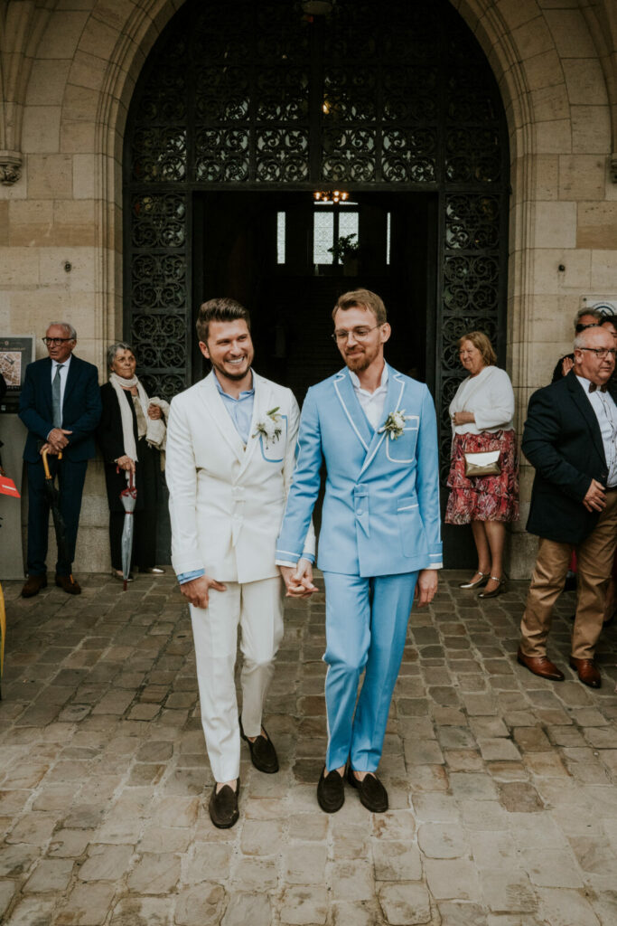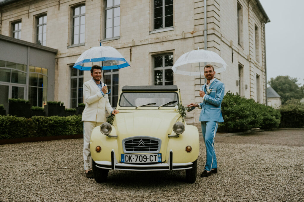 Le 1er juin 2024 au Beffroi d’Arras, Jérôme et Dimitri se sont mariés civilement. Ils ont pu apporter du soleil à cette journée en arrivant en deux chevaux jaune citron ! Ça annonçait déjà la couleur de cette journée.
