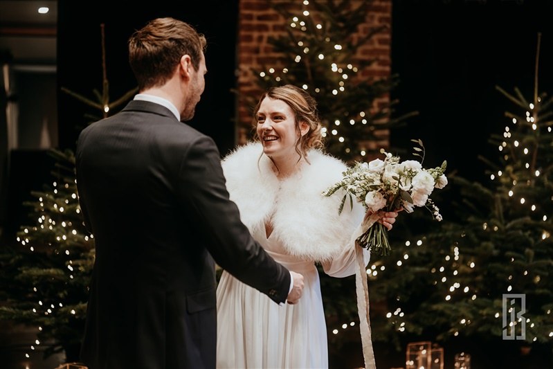C’est l’hiver et il fait froid dehors, alors en guise de verre d’accueil pour les invités, on leur a préparé … du vin chaud ! De quoi être cocoonés dès leur arrivée, et juste avant de les installer à la cérémonie. Et puis démarre ce joli moment …