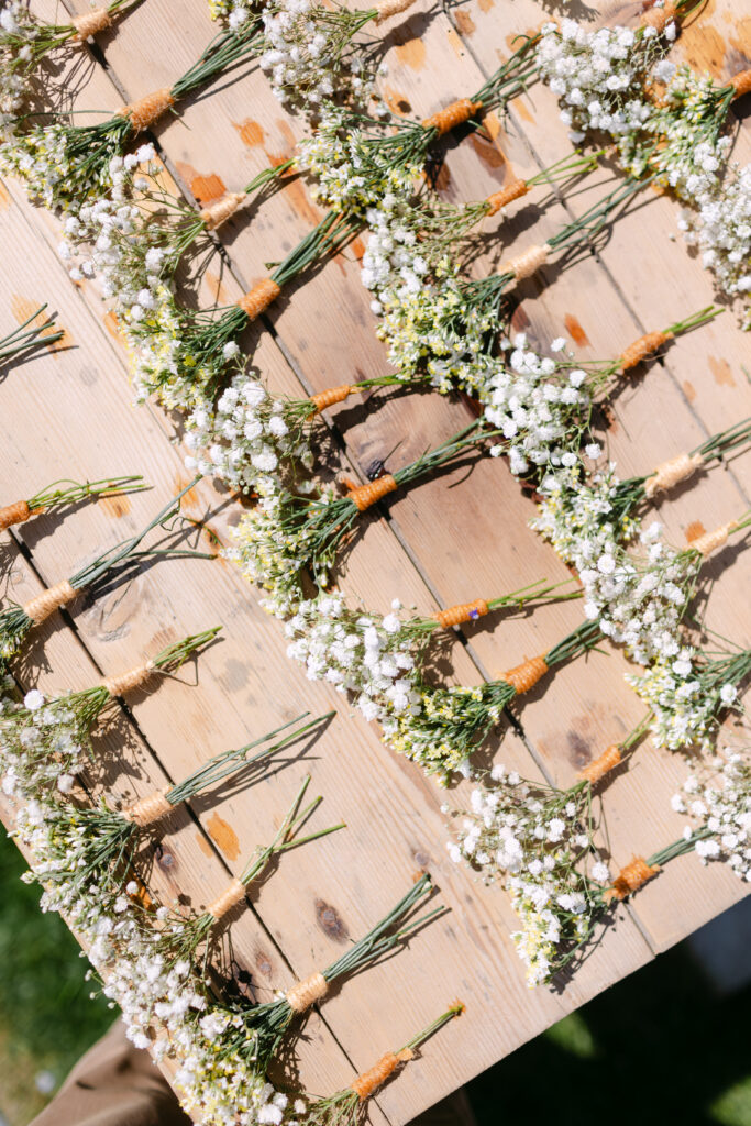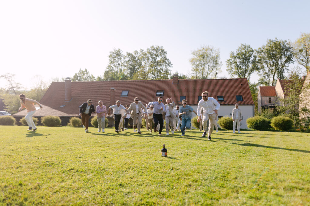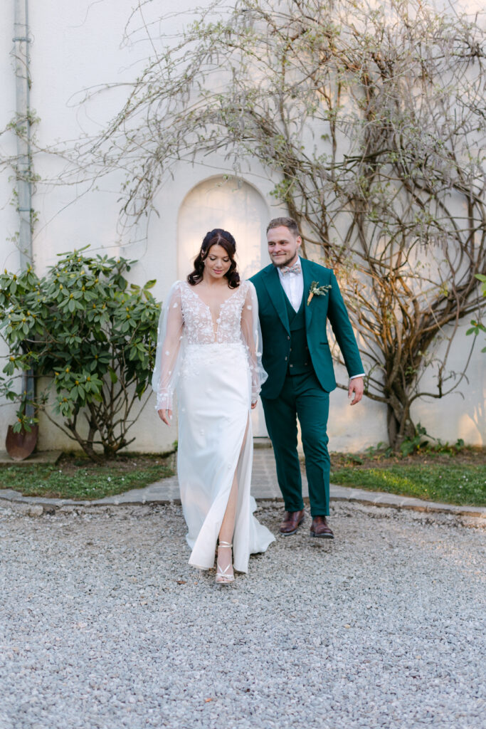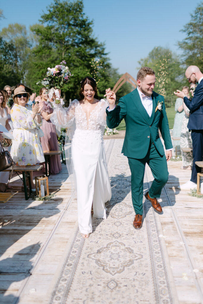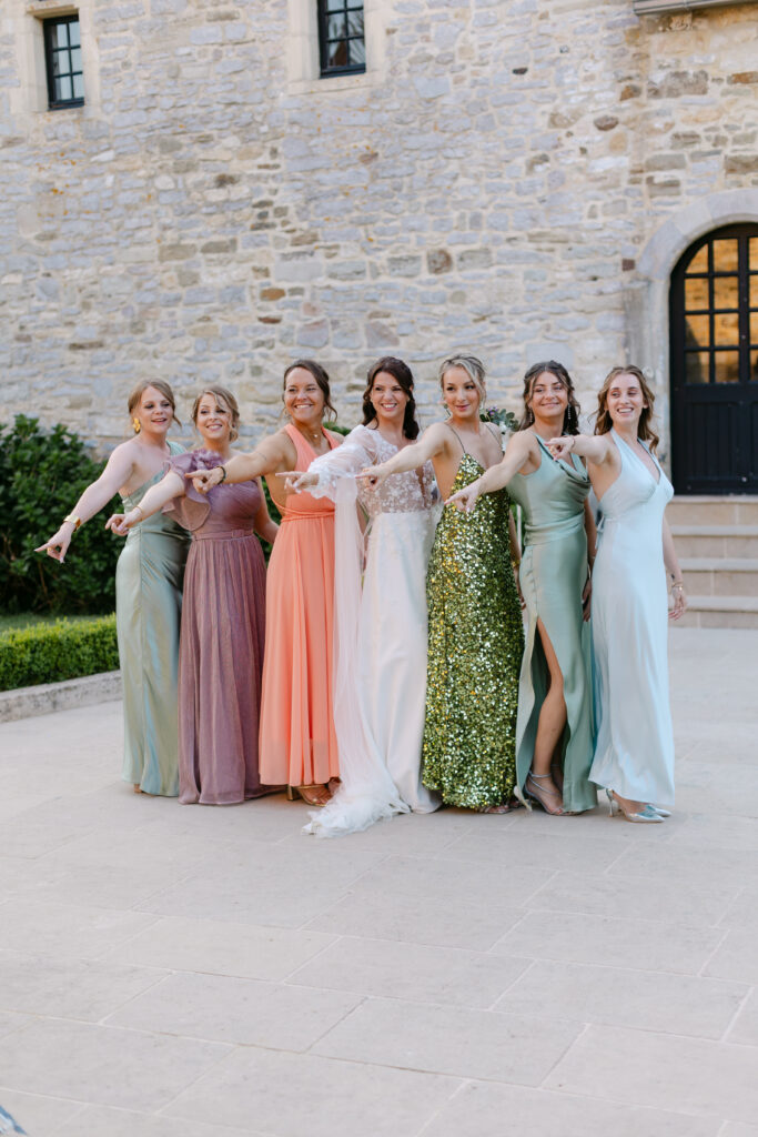 Le soleil était au rendez-vous, ce qui nous a permis de mettre en place la cérémonie laïque en extérieur dès la veille. Une vraie chance, car nous avons pu organiser une répétition générale avec tous les témoins, notamment pour coordonner l’arrivée du cortège. Une étape précieuse qui a permis à tout le monde d’être détendu et prêt pour le grand jour !