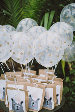 - Marques places originaux comme des flacons à bulles personnalisés, des colliers de bonbons autour des serviettes de table…